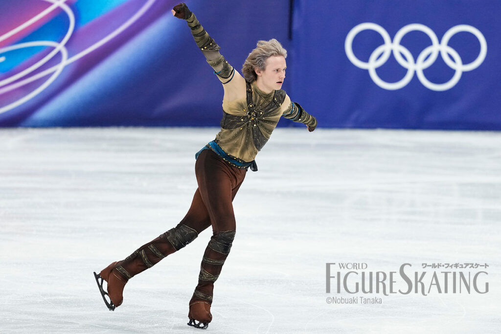 団体戦ですでに2回演技を行い、日程が近く厳しい状況で個人戦に臨んだイリア・マリニン。当日午後の公式練習には現れず、体力の配分に気を遣っていることがうかがわれるなか、SPには最後から2番目に登場した。最高難度のジャンプである4アクセル+3トウを跳ぶかどうかが注目されたが、構成は4フリップ、3アクセル、4ルッツ+3トウに。ジャンプの基礎点が1.1倍になる後半に基礎点だけで17.27を稼ぐ4ルッツ+3トウを配して極上の出来で着氷したのをはじめ、ジャンプの完成度は高く、108.16点を獲得した。通常は伸身の片足着氷で跳んでいるバックフリップをかかえ込みの姿勢で跳ぶなど、安全と体力温存への配慮は感じさせつつも、2日休養日を挟み、フリーでは、昨年12月GPファイナル(名古屋)で成功させた7クワッドに再び挑むかどうかが焦点だ。