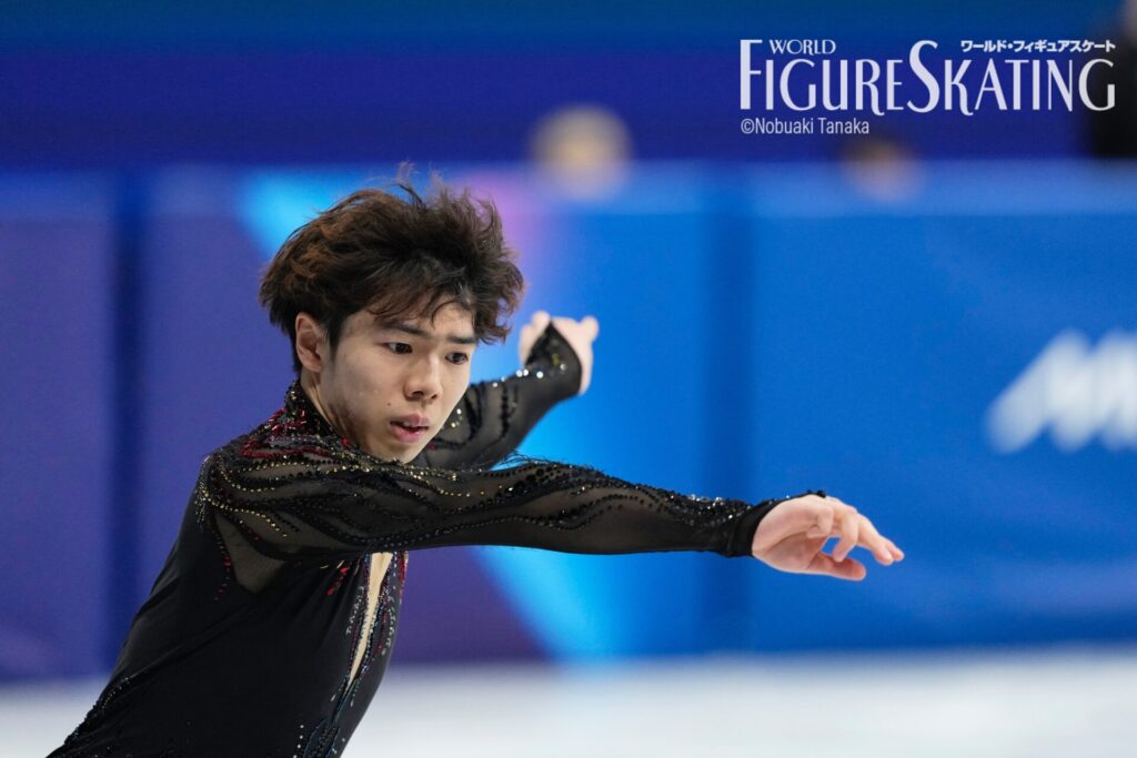 SPでは4トウ+3トウを4トウ+2トウにするミスが出て、たった1ミスで88.70点ながらも、それを上回る強豪揃いのなか9位スタート。団体戦のトリを飾って名を挙げたフリー「火の鳥」は、今季を通して非常に強さを発揮してきたプログラムだ。その信頼感と、大舞台のプレッシャーと、結果を追い求める自分自身との戦い……。さまざまな想いを背負いながら、個人戦フリーに臨んだ。落ち着いた表情でスタートポジションにつくと、冒頭の4ルッツを完璧に着氷。3アクセル+1オイラー+3サルコウも危なげなく決め、波に乗った。続く4トウ+3トウ、4トウでも高いGOEを獲得。3アクセル+2アクセル、3ループを挟んで、後半に向けては若干疲れがにじみ、3ルッツの着氷が乱れたものの、最後まで高い集中力を保ってほぼミスのない演技を滑りきった。