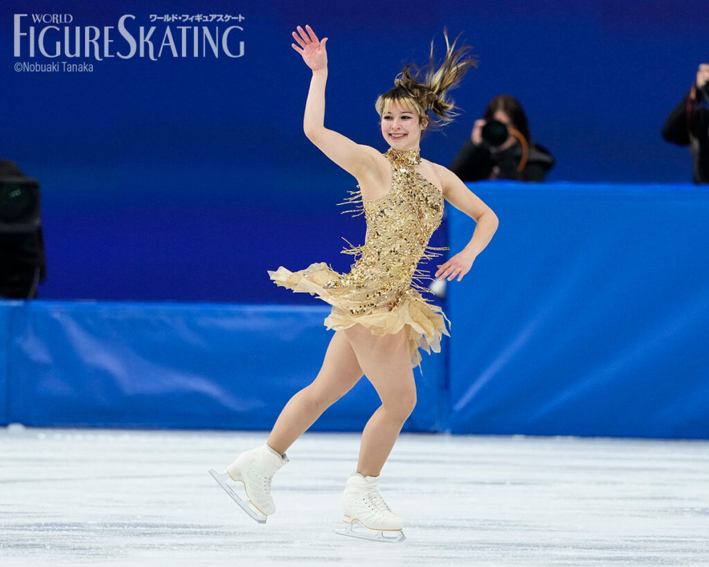 電撃復帰から1年半、アリサ・リュウが、世界選手権、グランプリファイナルに続くビッグタイトルを手にした。前日のショートプログラム(SP)は76.59点でトップと2.12点差の3位。「ガラに出るのが目標! 必要なのはメダルじゃなくて、私がここにいること、表現すること、それからやってきたことを全部出すこと。フリーは衣装を新しくしたから早くお披露目したい」と、フィギュアスケートを楽しむという自身のスタンスを変えることなく、フリーへ臨んだ。