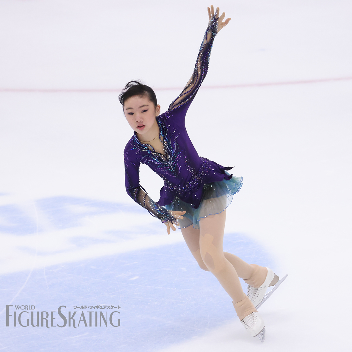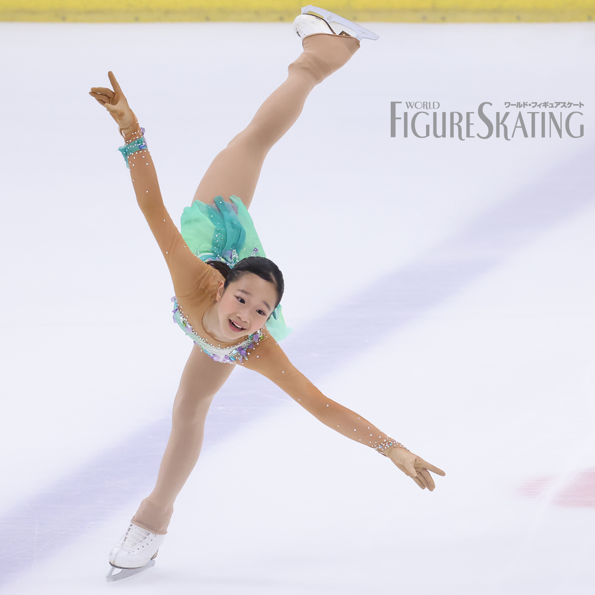 ジュニア女子では、星碧波(グランプリ東海クラブ)がSP3位から2つ順位を上げて優勝を勝ち取った。讃美歌に乗って天真爛漫に、転倒なくクリーンに滑った演技はスタンディング・オベーションを獲得。「ミスなく終えることができて、自己ベストが出せてうれしいです。昨日のショートではミスをしちゃって悔しかったんですけど、今回は表彰台に乗れるチャンスだと思って、(フリーでは)絶対ノーミスしたいと思いました。まだ3+3が跳べないので、一歩でも近づけるように頑張りたいです」。2位は大野友心音(名東FSC)、3位は榎本ミク(名東FSC)だった。