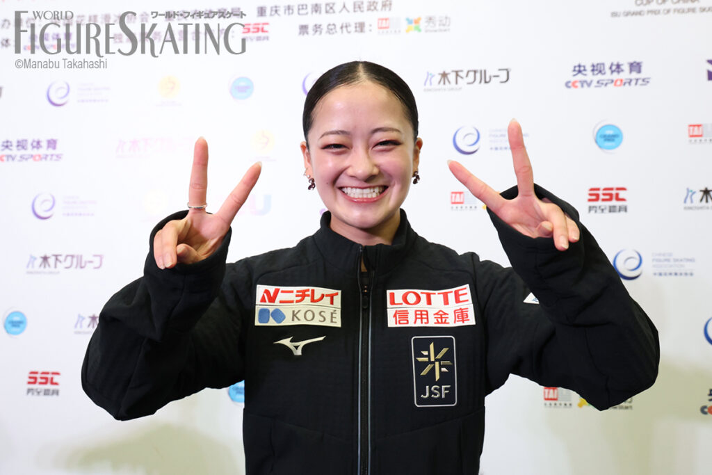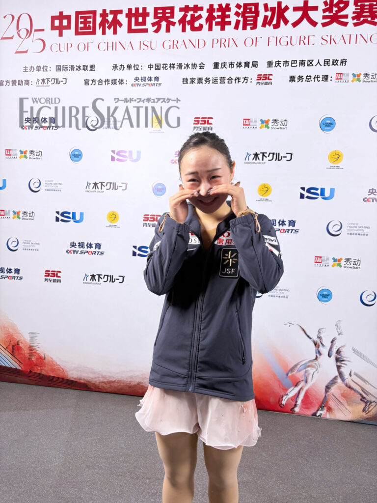 10月25日、中国・重慶で開催中のカップ・オブ・チャイナで女子フリーが行われ、渡辺倫果選手(三和建装/法政大学)が3位で2年ぶりに同大会でメダルを獲得しました。アンバー・グレン選手(アメリカ)が合計214.78点で大会連覇を達成し、世界女王のアリサ・リュウ選手(アメリカ)は2位で、これがグランプリでの初メダル。渡辺選手、6位の松生理乃選手(中京大学)、10位の吉田陽菜選手(木下アカデミー)の演技後のコメントをお届けします。