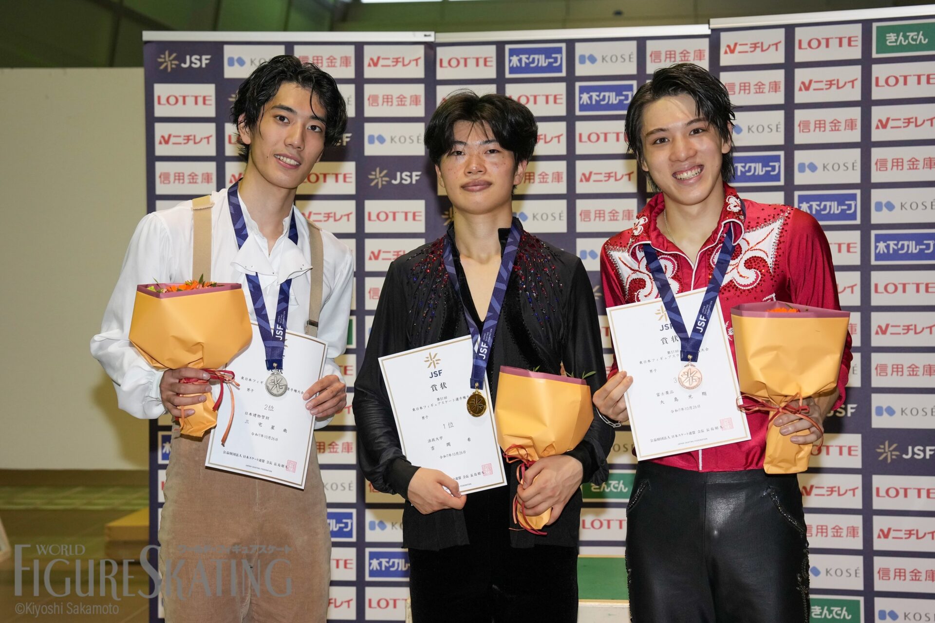 最終日の男子フリーでは、吉岡希選手(法政大学)が235.77点で優勝し、2位の三宅星南選手(日本建物管財)、3位の大島光翔選手(富士薬品)、4位の戸田晴登選手(東洋大学)、5位の小島志凰選手(日本大学)の5選手が全日本の切符を手にしました。小島選手は全日本選手権初出場となります。全日本への狭き門をめざして、悲喜交々の熾烈な争いを勝ち抜いた選手たちの奮闘を、優勝者コメントとフォトギャラリーで振り返ります。