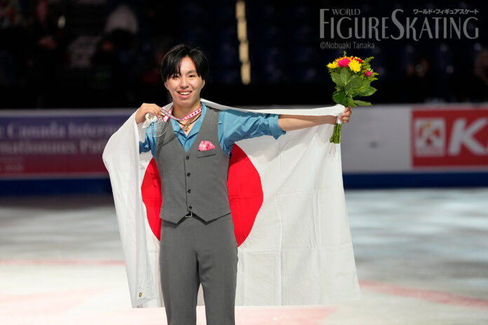 GPシリーズ第3戦スケートカナダは11月2日、最終日を迎え、男子フリーで三浦佳生選手がSP4位から1つ順位を上げて総合3位で表彰台に上がりました。前戦フランス・グランプリのフリーでは不本意な出来に落胆していた三浦選手。今大会では、フリーを「シェルブールの雨傘」に変更し、懸案だったジャンプで前半は手堅く4回転を着氷、後半はミスはありながらも転倒を回避する粘り強い演技で、「長いトンネルを抜けて光が見えてきた」と語る内容となりました。