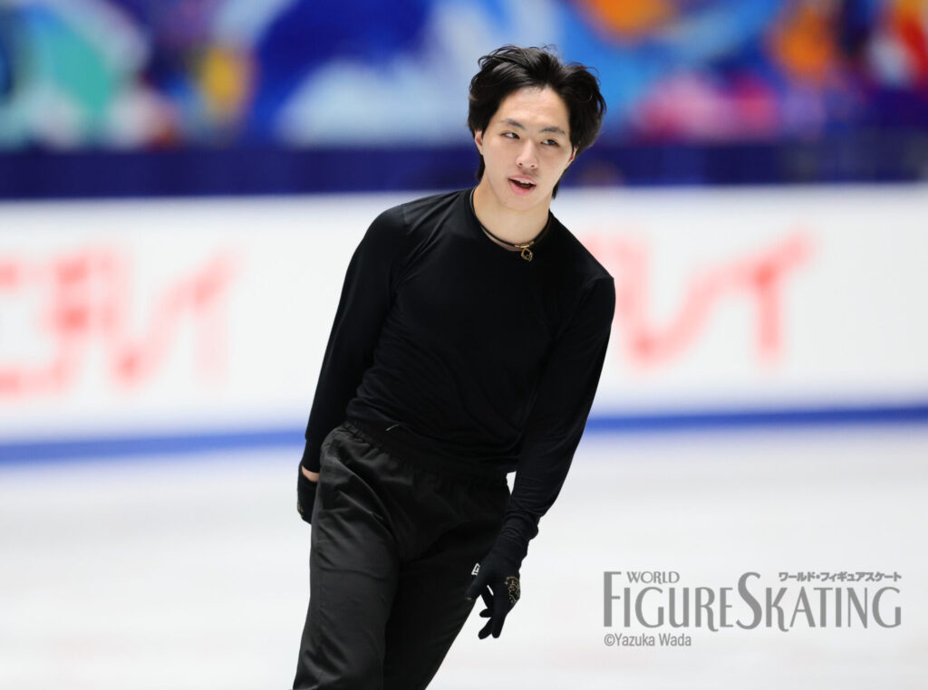国立代々木競技場第一体育館で明日12月19日から競技がスタートする全日本選手権2025。12月18日、前日練習に参加した選手たちが練習後に取材に応じ、大会への意気込みをコメントしました。男子の最初のグループで練習した選手たちのコメントと写真を2記事に分けてお届けします。続いて三浦佳生選手(オリエンタルバイオ/明治大学)、友野一希選手(第一住建グループ)、山本草太選手(MIXI)です。