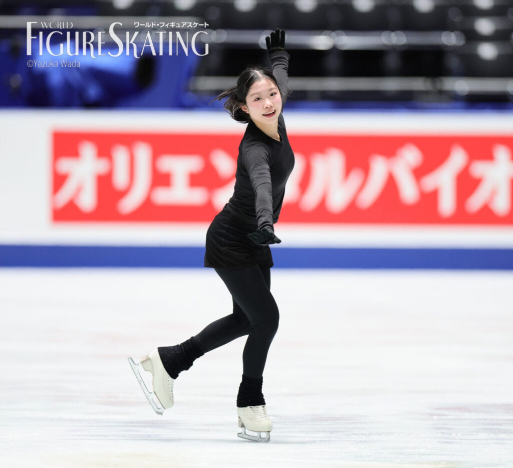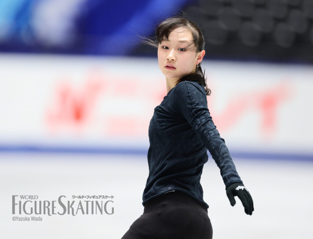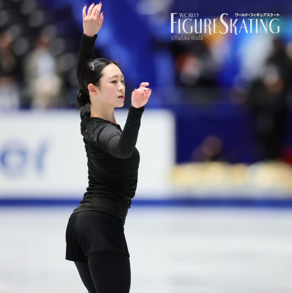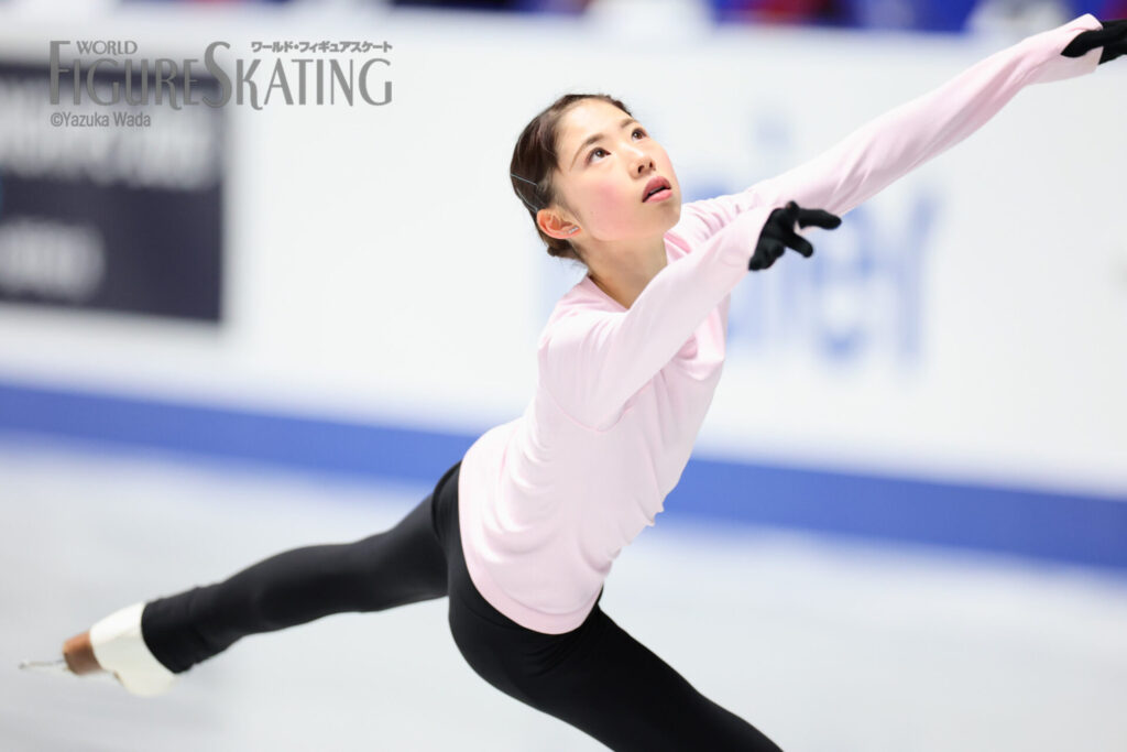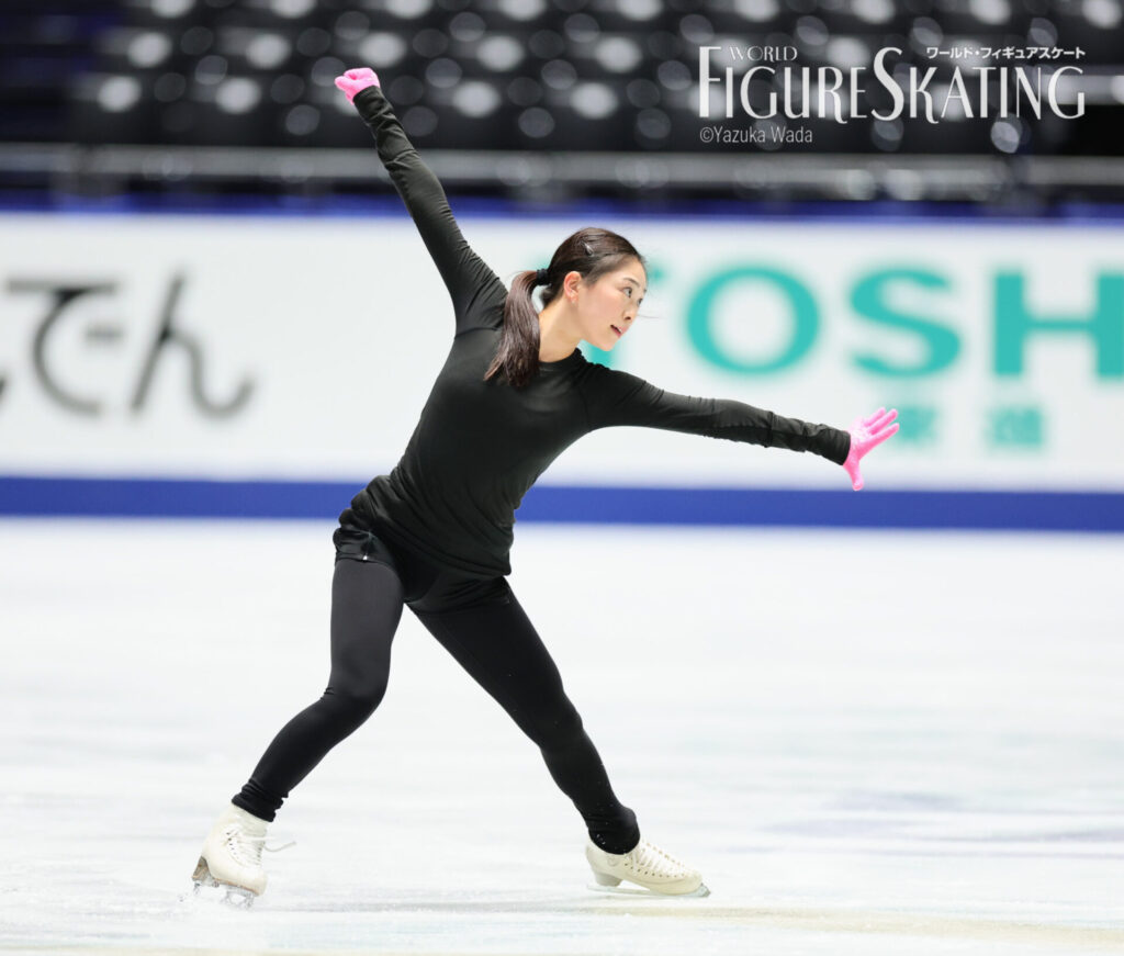 去年とはだいぶ立場も違いますし、緊張感も違ったのが出てくると思うんですけど、それを乗り越えた先にオリンピックがあると思っているので、まずは乗り越えられるように頑張りたいです。オリンピックは夢舞台、いちばん目標にしている舞台でもあるので、絶対に逃してはいけないチャンスだなって思います。いままでいい成績が出た理由は、1つ1つの試合を着々とこなしてきたから。今回も結果は気にせずに、まずはしっかり自分の演技に集中できれば、結果はついてくると思います。トリプルアクセルは、いちばん調子がよかったフランスGP前くらいに調子が上がっていて、すごく試合が楽しみ。優勝はそこまで意識していなくて、表彰台に乗れたらいいなというくらいの気持ちで、それよりも自分のトリプルアクセルを2本とも着氷するのが大きな目標なので、そこをかなえられたらいいと思います。中庭先生は「よくここまで来たね」と言ってくださって、今シーズンどうなるかわからない状態で迎えていたので、まさかこうなるとは私自身も、先生もきっと思っていなかったですし、「この経験を大事にして、楽しみましょう」と言ってくれました。MFのいつも一緒に練習している先輩と大きな舞台に出られることはいい経験ですし、最後かもしれないので、しっかりとこの経験を大切にしたいです。倫果ちゃんとは「見ててね」とお互いにアクセルを跳んだり、いつも通り、すごくいい練習でした。