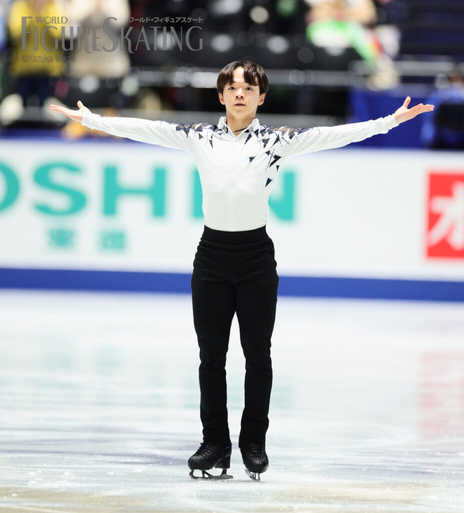 鍵山 そうですね。周りがすごく鮮明に見えていたというか、自分に集中しすぎず、でも周りの雰囲気にのまれずというちょうどいいラインでパフォーマンスができてよかったです。今日はショート(「I Wish」)のカバーを作曲してくれたMarcinさんと角野隼斗さんが前の席で(自分の)タオルをもって見ていると聞いていたので、「めっちゃ頑張らないと」という思いでいました。恐れ多い方なので連絡することとかはあまりないんですけど、なかなかそういう機会はないと思うので、最大限のリスペクトをもちつつ、パフォーマンスは自分らしさを出していけるように。今日はしっかり最後まで演じられたのかなと思います。ガッツポーズはあまり意識していなかったんですが、全日本で、目標としていたステップバイステップというのが順調に来ていると思うので、あとは自信だけ積み重ねて、ここからまた頑張って行けたらと思います。