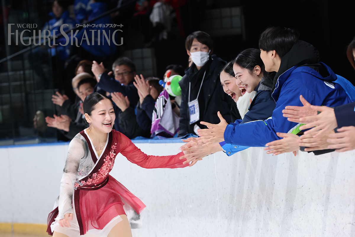 地元・青森は、先に滑った聖前埜乃華がスタンディングオベーションを巻き起こす万感の演技を披露(9位)。青森山田高校出身で、現役続行を発表後初めての試合となった渡辺倫果も、高まる雰囲気のなかで完璧なトリプルアクセルを跳び、青森の観客を大いに喜ばせた。