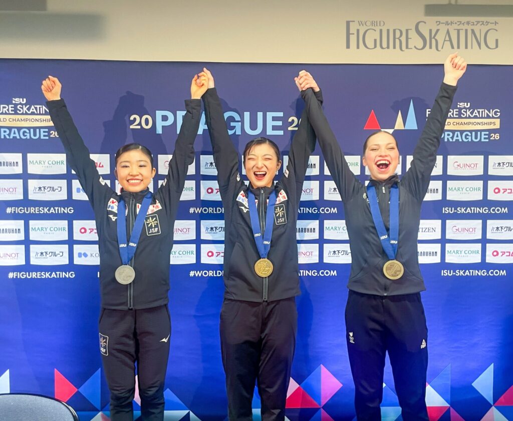 チェコ・プラハで開催中の世界選手権は3月27日(現地時間)に女子フリーが行われ、SP1位の坂本花織選手(シスメックス)が現役最後の試合を日本勢初の4度目の優勝で飾りました。千葉百音選手(木下グループ)が2位で2年連続のメダル獲得、ベルギーのニナ・ピンザローネ選手が3位に入り初めて表彰台に上がりました。ミラノ・コルティナ・オリンピック銅メダルの中井亜美選手は、世界選手権初挑戦で9位。