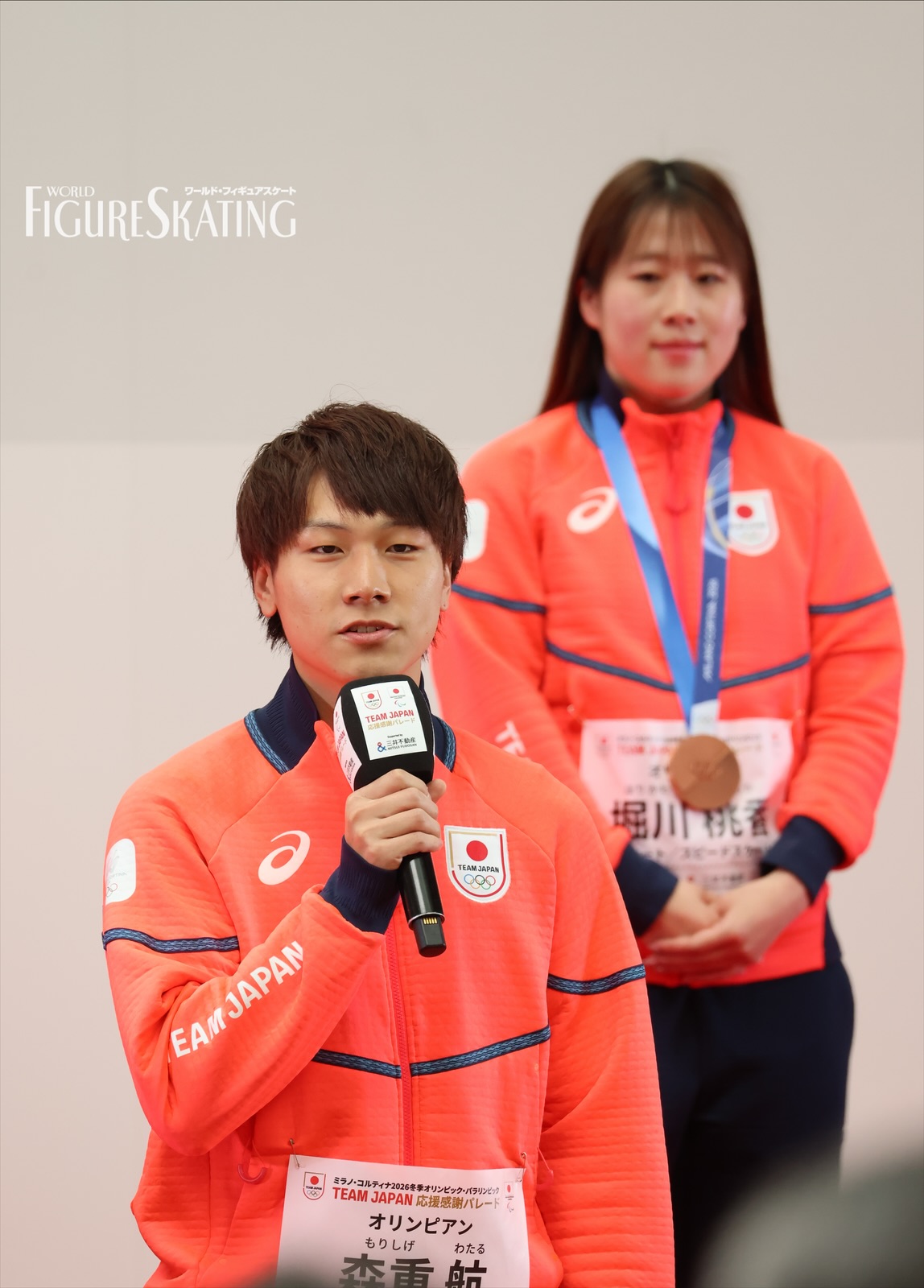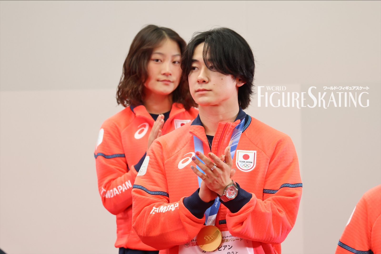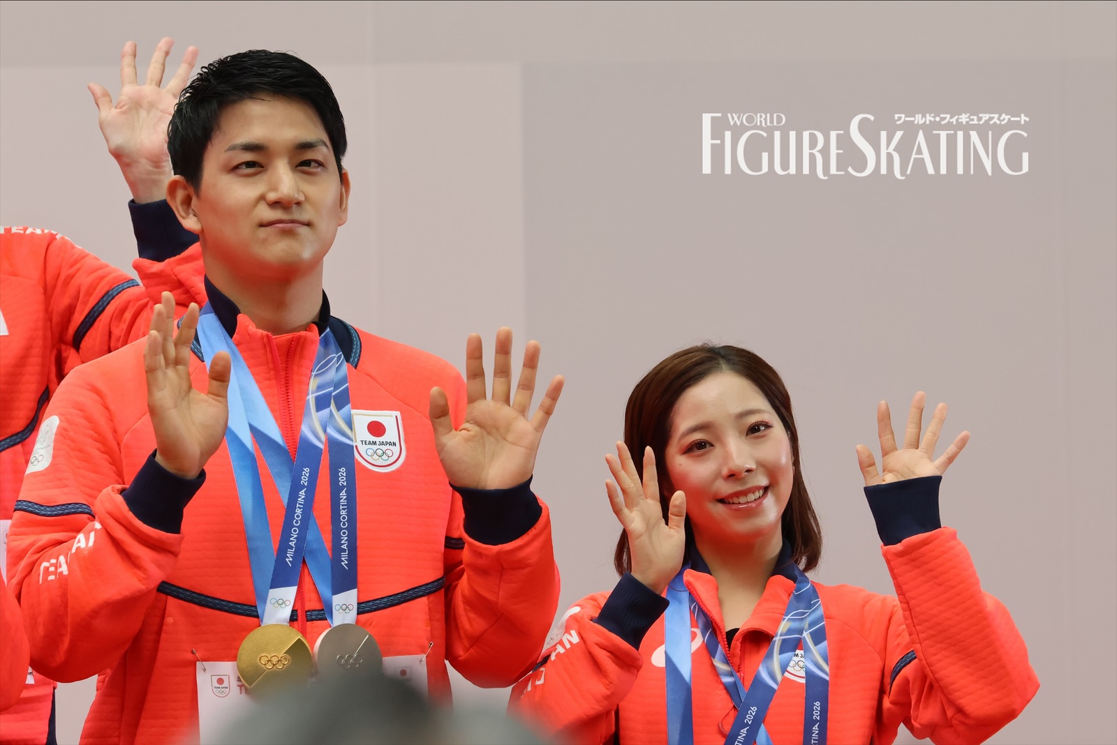 冬季大会後に日本選手団のパレードが行われるのは今回が初めて。およそ115人の選手団が8グループに分かれて、日本橋のコレド室町テラスから大通りを約700m歩き、大会期間中に声援を送った観客へ直接感謝の思いを伝える。フィギュアスケートからは、ペア金メダルの“りくりゅう”こと三浦璃来&木原龍一、女子シングル銀メダルの坂本花織、銅メダルの中井亜美、男子シングル銀メダルの鍵山優真、銅メダルの佐藤駿、団体銀メダルの吉田唄菜&森田真沙也、そして千葉百音、三浦佳生、長岡柚奈&森口澄士が参加した。