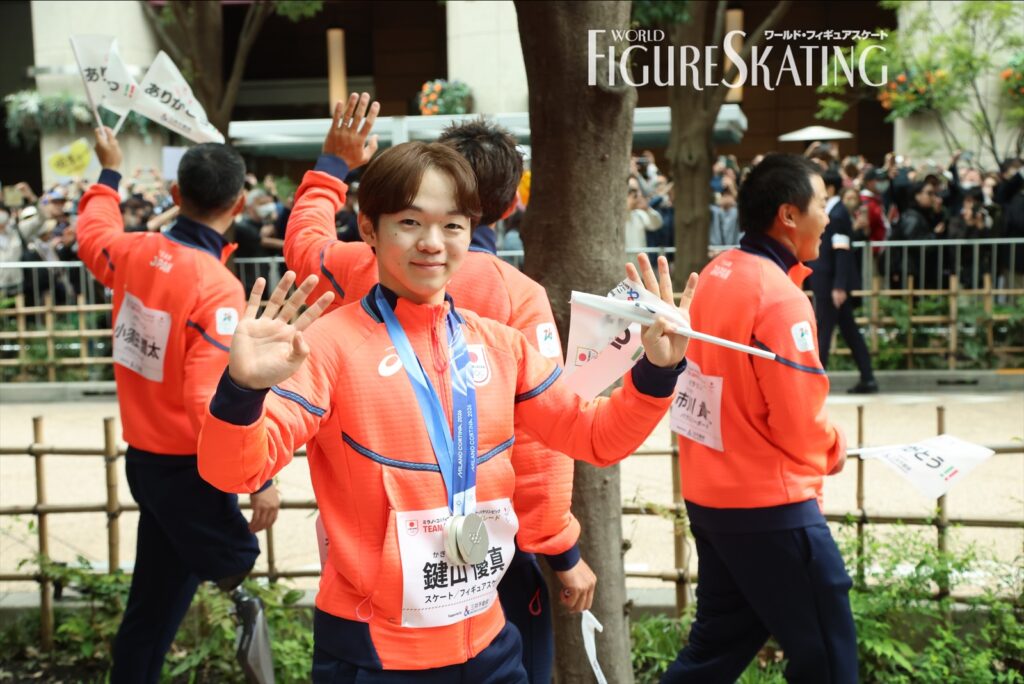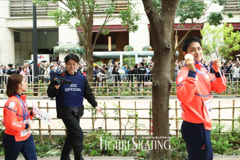 たくさんの方々に私たちの名前を呼んでいただいて、思いがこみ上げて泣きそうになってしまいました。たくさんの方に応援されて、私たちは支えられて、この場にいるんだなと痛感しました。(パレード中のリフトは)身長が小さくて奥の方まで見ることができなかったので、みなさまの目に映るかな? といった思いでリフトをしてもらっていたので、みなさまに見ていただけたらうれしい。たくさんの方に“りくりゅう”と言っていただいて、ペア競技もたくさんの方に知っていただけたかなと思えたオリンピックだった。ここで終わらせずに、次の世代につないでいけるように、長い時間がかかると思うんですけど、私たちもがんばっていきたいと思います。