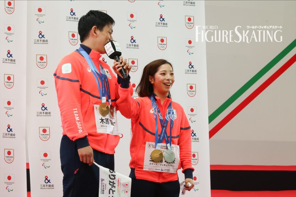 たくさんの方々に支えていただき、自分たちは歩んでこられたんだと改めて感じた。朝早くからたくさんの方々に集まっていただき、ありがとうございました。日本のみなさまにもっとペアを知っていただきたいという思いがあるので、また今日が何かひとつペアへの入り口になったらいいなという思いをもって(三浦璃来選手を)リフトしました。今日1日すごく幸せな気持ちになって、自分たちがまた新しいスタートをしていくんだなという気持ちになれた。現役を引退しましたが、ペアを広めていけるようにがんばっていこうと思いました。